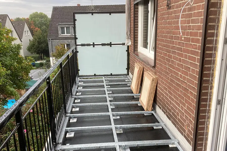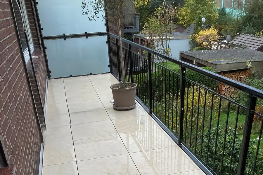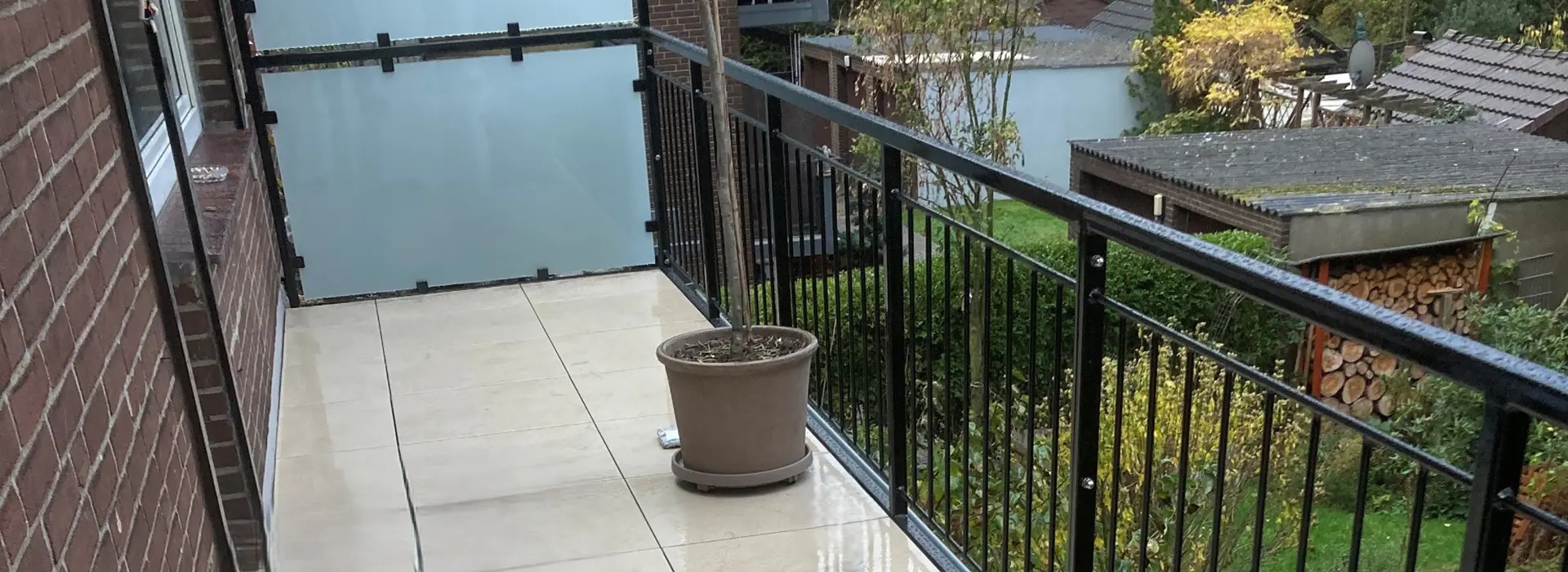 Im hier gezeigten Projekt führten wir eine umfassende Sanierung bestehender Geländer aus Stahl durch – von der Demontage über Abdichtung bis hin zur Montage eines neuen Geländersystems aus verzinktem und beschichtetem Stahl mit einer Füllung aus Verbundsicherheitsglas (VSG).