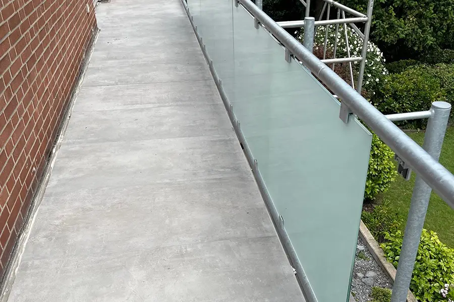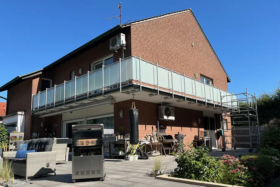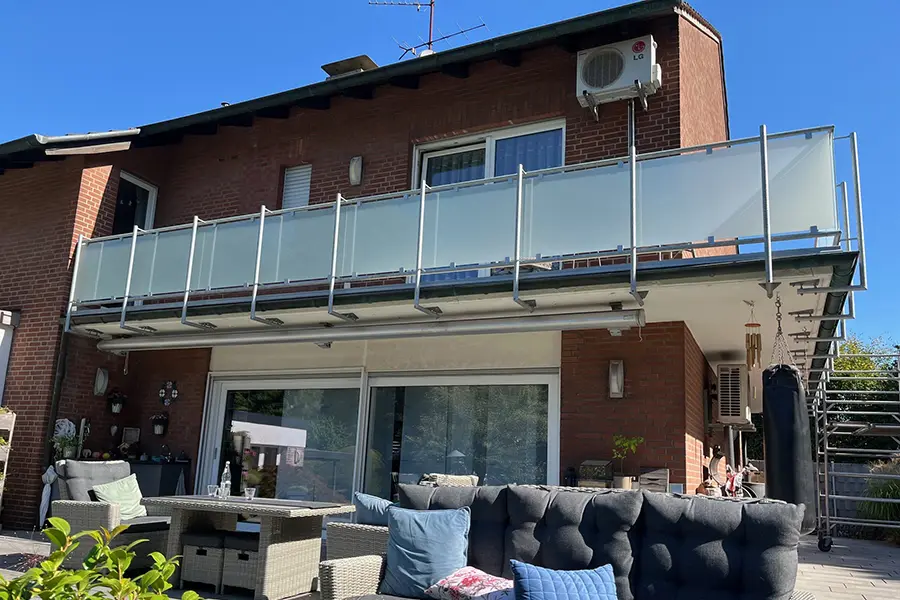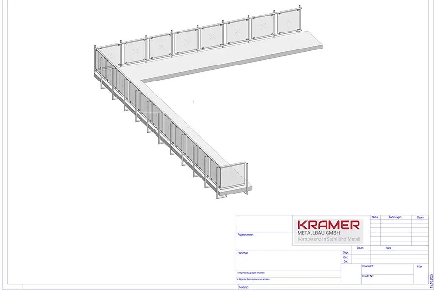 Rückbau des alten Geländers, Planung und Konstruktion des neuen Geländers inkl. Statik und Montage des neue Geländersystems mit Sicherheitsglas.